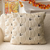 4TH Emotion Fall Pumpkin Decorative Pillow Covers 20x20 Set of 2, Beige Soft Plush Faux Fur Wool Farmhouse Throw Cushion Cases for Autumn Thanksgiving Holiday Home Decorations