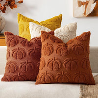 MIULEE Fall Pumpkin Pillow Covers 20x20 Inch Set of 4 - Soft Cozy Plush Decorative Pillows with Embroidered Pumpkin Pattern Autumn Halloween Holiday Decor for Sofa Couch Bed Living Room,Rust-Yellow