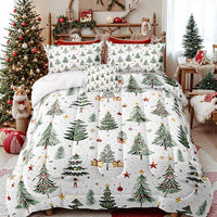 Bedorm Christmas Tree Comforter Queen Merry Xmas Bedding Set Green Xmas Tree Yellow Reds Balls Stars Holiday Decor Green White Quilt Comforter Set