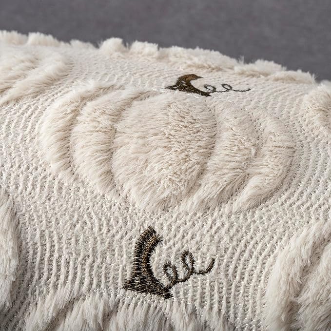 4TH Emotion Fall Pumpkin Decorative Lumbar Pillow Covers 12x20 Set of 2, Beige Soft Plush Faux Fur Wool Farmhouse Throw Cushion Cases for Autumn Thanksgiving Holiday Home Decorations