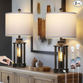 Black Living Room Lamps Set of 2, 3 Way Dimmable Touch Control Farmhouse Table Lamps with 2 USB Ports, Retro Bedside Lamp with 2 LED Nightlight,Rustic Bedroom Lamp for Nightstand(4 LED Bulbs Included)