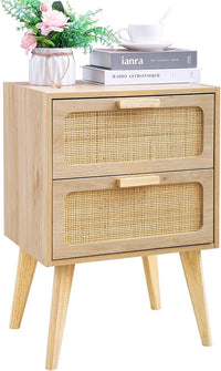Rattan Nightstand,Boho Bedside with Storage,End Table,Side Table with 2 Hand Made Rattan Decorated Drawers for Small Space,Livingroom,Bedroom,Natural 11.8" D x 16" W x 22.4" H CTG59Y