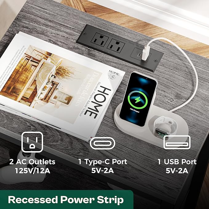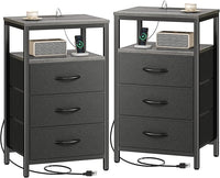 Huuger Nightstands Set of 2, 27.6 Inch End Tables with Charging Station, Fabric Drawers, Bedside Tables with USB Port and Outlet, Night Stands for Bedroom, Charcoal Gray