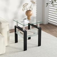 IANIYA Modern Glass End Table, 2-Tier Side Table with Tempered Glass Top & Metal Legs, Night Stand Corner Table for Living Room, Bedroom