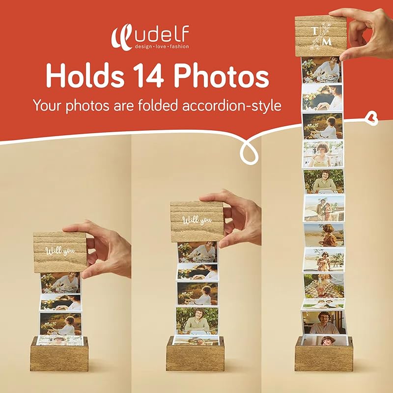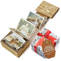 udelf Personalized Wooden Photo Box Gift with Initials-Handmade Picture Box Gift, Wedding Keepsake Box and Anniversary Box, Custom Gifts, Romantic Gift Photo Memory Storage Box, Pull Out Photo-3"x2"