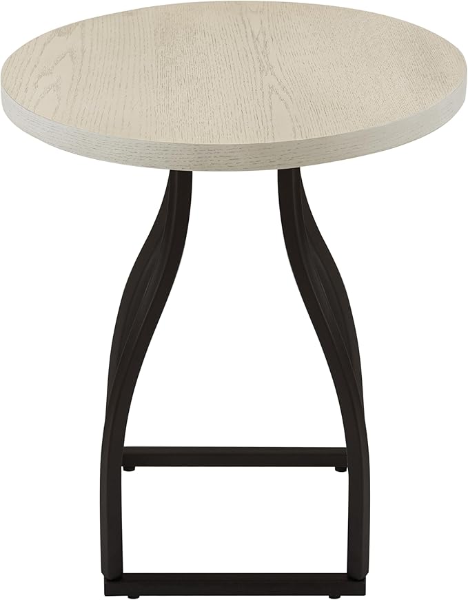 HomePop Lindsay Round Accent Table with Metal Base - White Wash