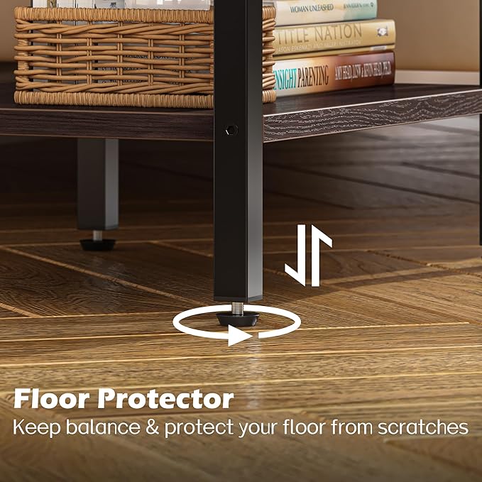 SUPERJARE Nightstand Set of 2, Bed Side Tables with Charging Station, Adjustable Fabric Drawer, Night Stand for Bedroom, 3-Tier Storage End Tables, Walnut