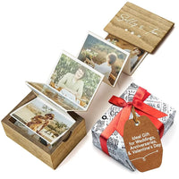 udelf Personalized Wooden Photo Box Gift with Accordion Picture Pull Out-Custom Gifts for Couples, Wedding Keepsake Box, Anniversary Box, Picture Box Gift with Couple Names-Holds 14 Photo Prints 3"x2"
