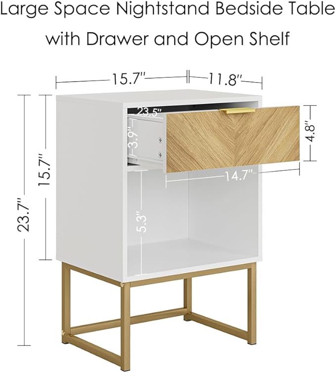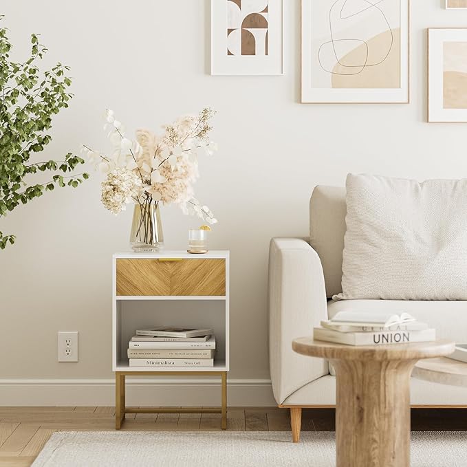 Masupu Nightstand,Modern Night Stand Boho Farmhouse Wood Bedside Table with Storage Drawer Side End Table for Bedroom,Living Room,Office,White