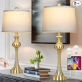 21" Set of 2 Modern Table Lamp Bedside Lamps for Bedroom Living Room Nightstand Lamp for End Tables 3-Color Temperatures Pull Chain Wood Fabric for Home Office Desk Decor (Light Brown+Brass)