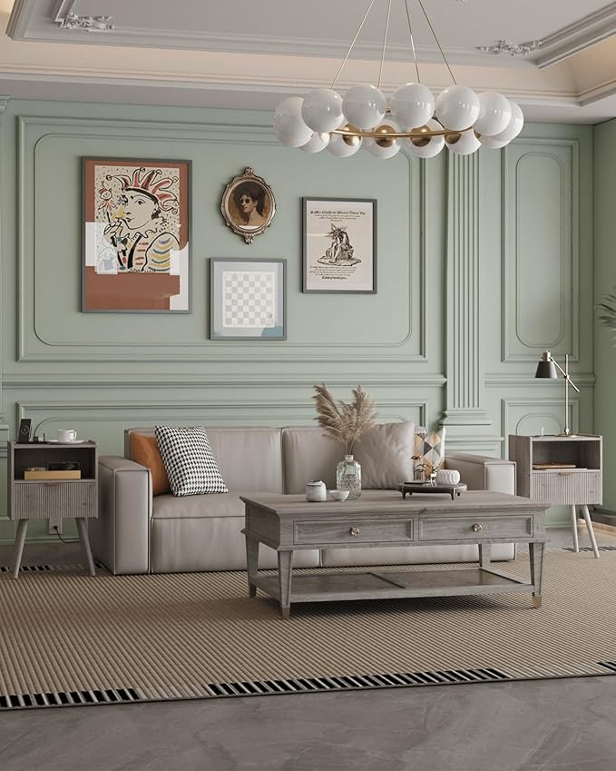 Nightstand,Modern Bedside Table with Storage Drawer and Open Wood Shelf, Accent Night Stand with Solid Wood Legs for Living Room, Bedroom and Small Spaces,Easy Assembly (Grey Oak-Outlet)