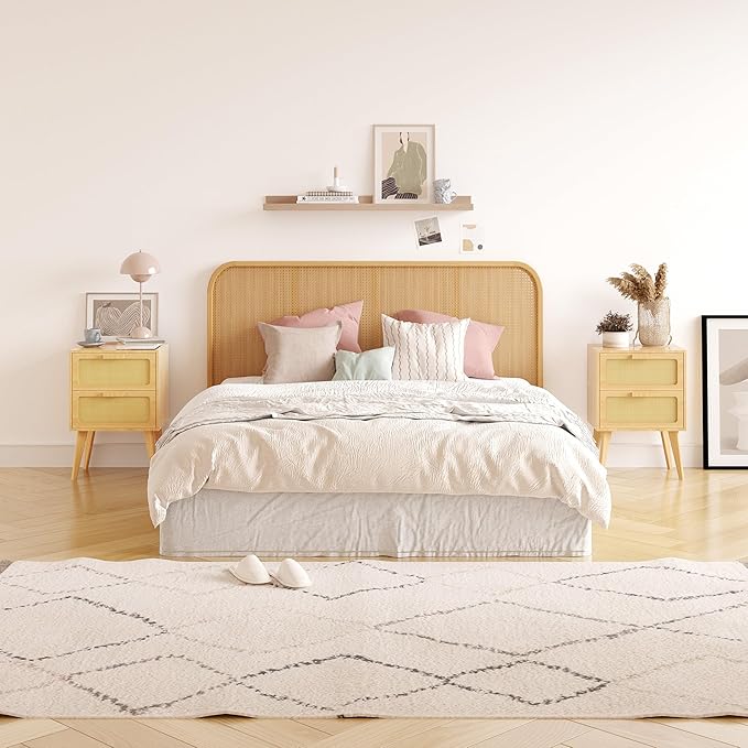 Rattan Nightstand Set of 2,Side Table with Hand Made Rattan Decorated Drawers,Boho Bedside Table,Wood Accent Table with Storage for Small Space,Livingroom, Bedroom, Natural CTG59Y-2