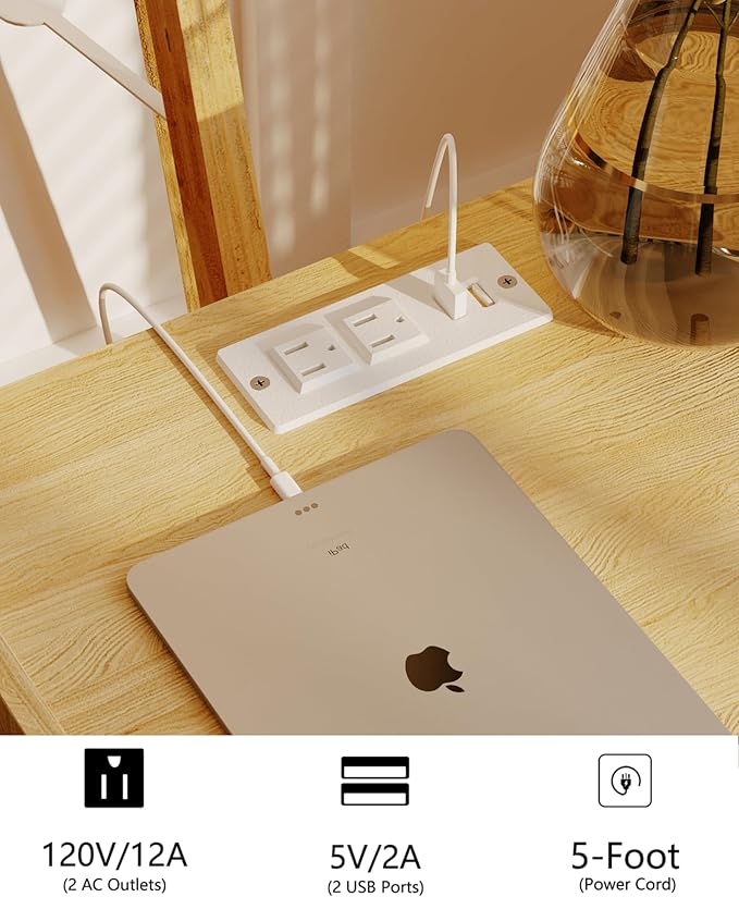 Rattan Nightstand with Outlet,Modern Bedside Table with Storage Drawer and Open Wood Shelf, for Living Room, Bedroom and Small Spaces, Accent Night Stand with Solid Wood Legs,Yellow Oak