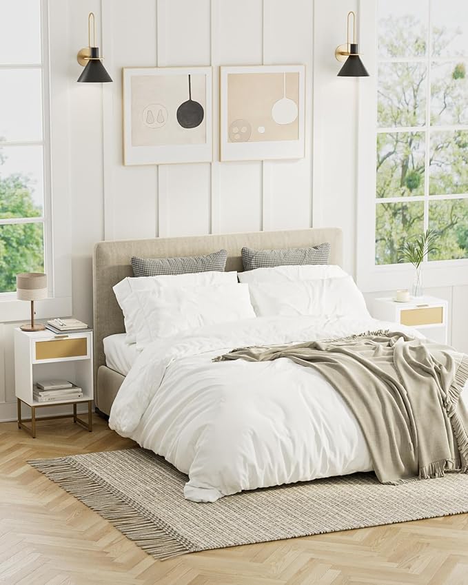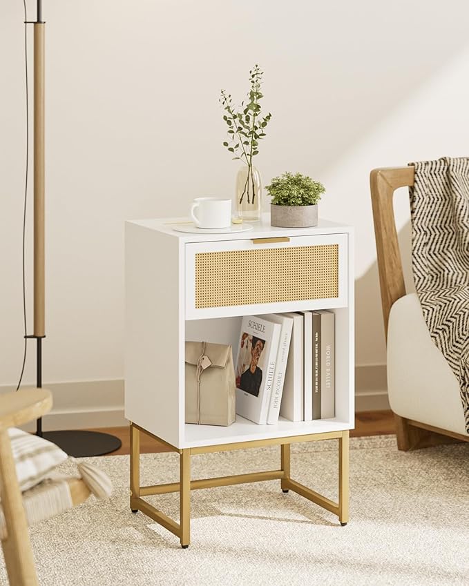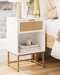 Masupu Rattan Nightstand,Modern Night Stand Boho Farmhouse Wood Bedside Table with Storage Drawer Side End Table for Bedroom,Living Room,Office,White