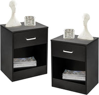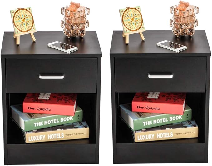 Karl home Nightstand Set of 2, Wood Nightstand for Bedroom, Bedside Table Set 2 with Open Shelf, Modern Night Stand Set of 2, End Table, Black Sale