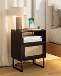 Nightstand,Morden Bedside Table with Gold Frame,Small White Night Stand,End Table,Bedside Furniture,Side Table with Drawer and Shelf for Bedroom,Living Room (2Drawers, Walnut Brown)