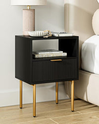 Nightstand,Morden Bedside Table with Gold Frame,Small Black Night Stand,End Table,Bedside Furniture,Side Table with Drawer and Shelf for Bedroom,Living Room (1Drawer, Black)