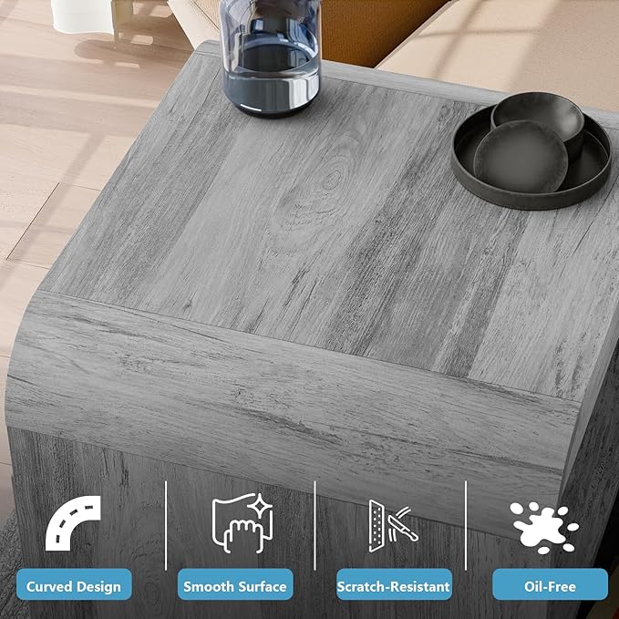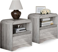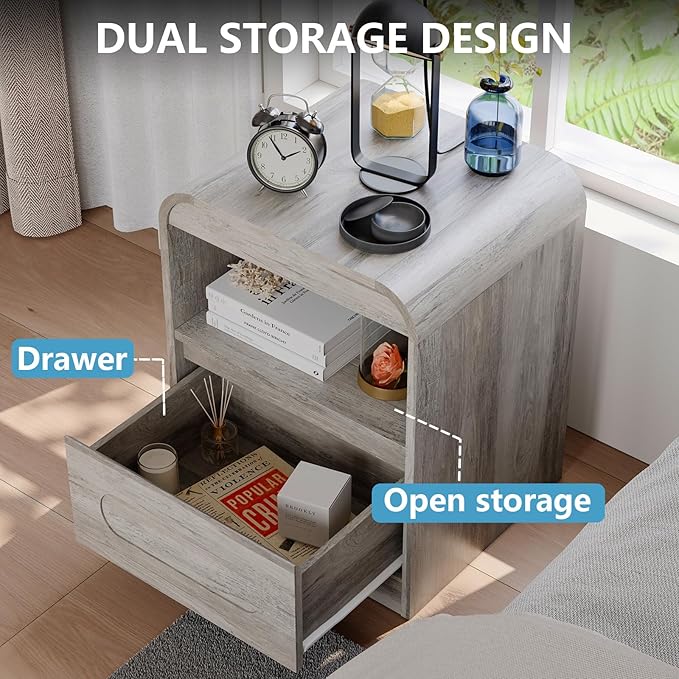 Grey Nightstand Set of 2, Nightstand with Drawers, 22" Modern Nightstands Bed Side Table Large Bedside Stand 18" Wide End Table for Bedroom Living Room Sofa Office,Curved Profile Design