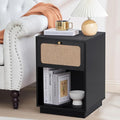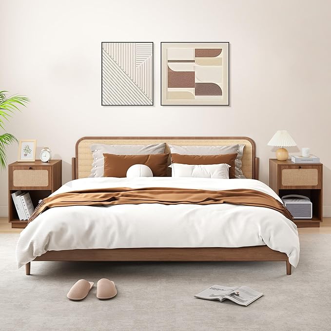 AVZEAR Mid Century Night Stand Set of 2, Modern Nightstand with Drawer & Curved Linen Panel, Farmhouse End Table Wood Bedside Table Small Side Tables for Small Space, Bedroom(Walnut)