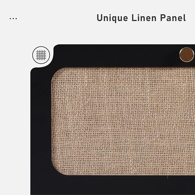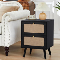 Mid Century Night Stand with 2 Drawers, Farmhouse End Table with Storage & Curved Linen Panel, Modern Nightstands Bedside Table Small Side Tables for Small Space, Bedroom (Black)