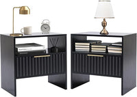 Nightstand Set of 2 Night Stand with Drawer Open Storage Shlef Modern Badside Stand End Table Fluted Mid Century Nightstand for Bedroom Living Room Sofa Couch Home Office Black