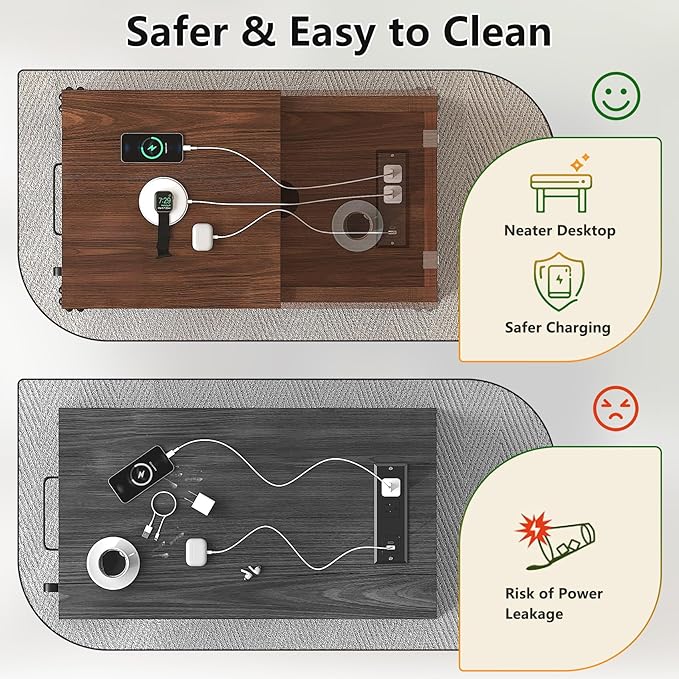Farmhouse End Table with Charging Station and 1 Storage Cabinet, 1 Drawer, Cherry Wood Nightstand Narrow, Skinny Side Table, Slim Bedside Table, Small Nightstand for Bedroom, Living Room, Sofa