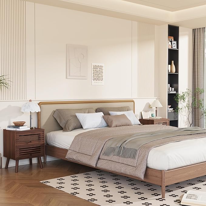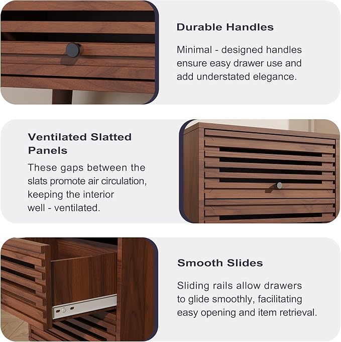 Nightstand, Side Table, End Table, Mid Century Modern Nightstand with Hollowed Drawers, Bedside Tables, Small Nightstands with Storage for Bedroom, Living Room, Walnut