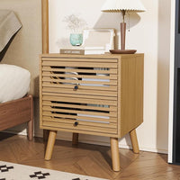 Nightstand, Side Table, End Table, Mid Century Modern Nightstand with Hollowed Drawers, Bedside Tables, Small Nightstands with Storage for Bedroom, Oak