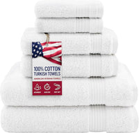 Hotel & Spa Quality Super Absorbent and Soft, Cotton, 6 Piece Turkish Towel Set for Kitchen and Decorative Bathroom, Includes 2 Bath Towels 2 Hand Towels 2 Washcloths, Snow White