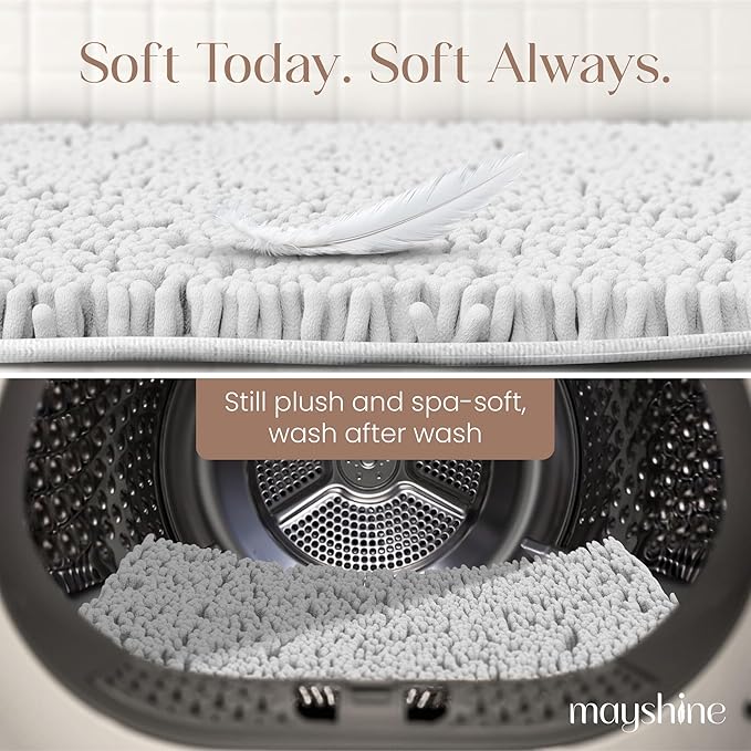 MAYSHINE Plush Shaggy Chenille Bath Mat | Extra Soft, Super Absorbent, Non-Slip Bathroom Rug | Fluffy Microfiber, Area Rug Sets for Bathroom Floor, Kitchen, Living Room | 32"x20" | White