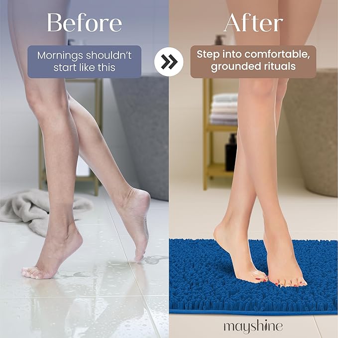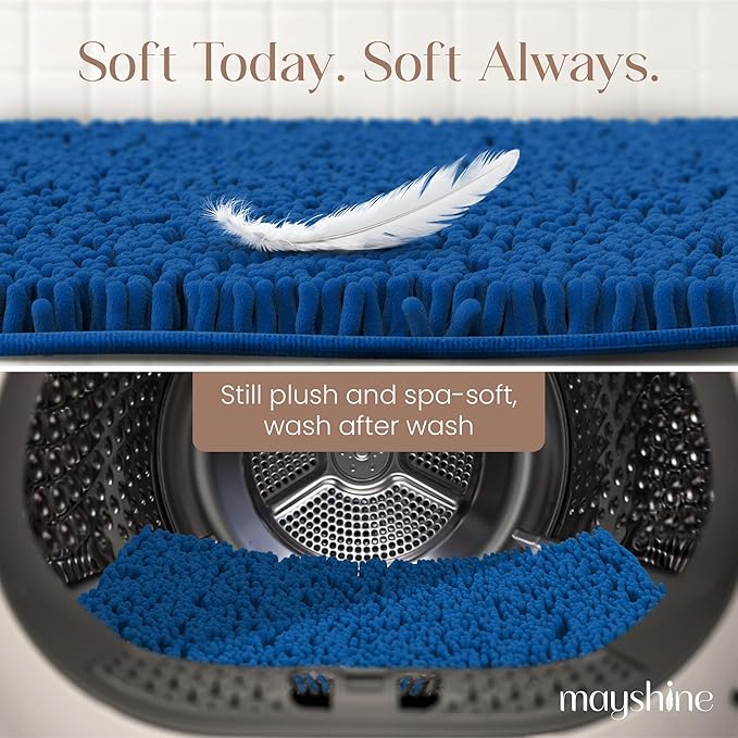 MAYSHINE Plush Shaggy Chenille Bath Mat | Extra Soft, Super Absorbent, Non-Slip Bathroom Rug | Fluffy Microfiber, Area Rug Sets for Bathroom Floor, Kitchen, Living Room | 39"x24" | Dark Blue Sale