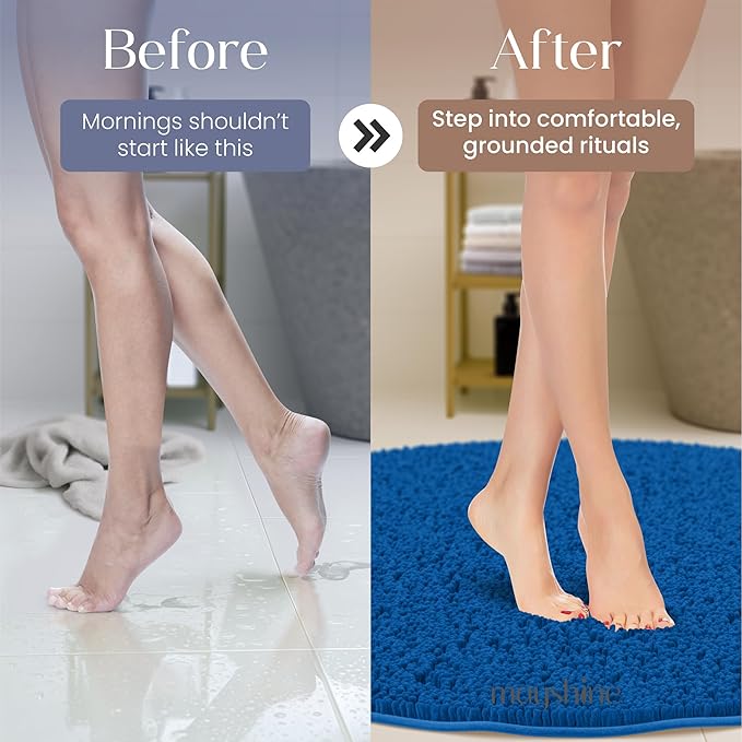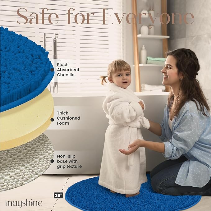 MAYSHINE Round Area Rug Set for Bathroom | Soft Plush Chenille Bath Mat, Water Absorbent Non-Slip Bathroom Rug | Washable Shag Carpet for Shower, Bedroom, or Home Décor | 36"x36" (Round) | Dark Blue