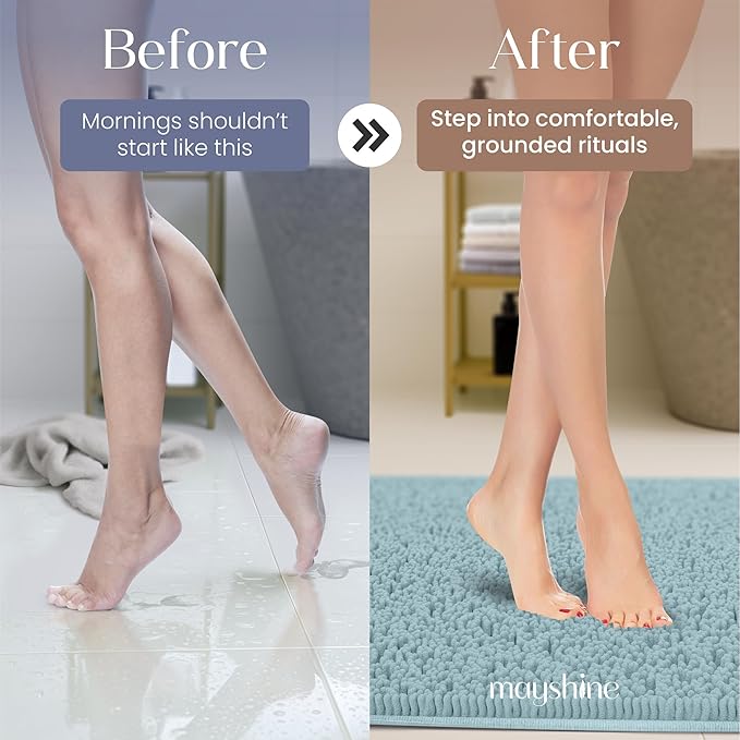 MAYSHINE Plush Shaggy Chenille Bath Mat | Extra Soft, Super Absorbent, Non-Slip Bathroom Rug | Fluffy Microfiber, Area Rug Sets for Bathroom Floor, Kitchen, Living Room | 47"x27" | Spa Blue