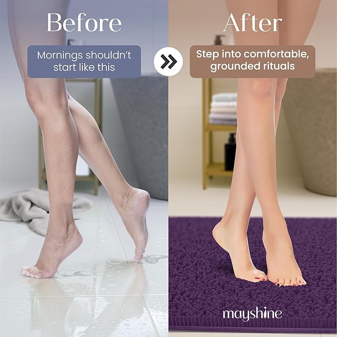 MAYSHINE Plush Shaggy Chenille Bath Mat | Extra Soft, Super Absorbent, Non-Slip Bathroom Rug | Fluffy Microfiber, Area Rug Sets for Bathroom Floor, Kitchen, Living Room | 59"x31" | Plum