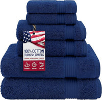 American Veteran 100% Cotton Turkish 6 Piece Luxury Towel Set - 2 Bath, 2 Hand, 2 Washcloths in Navy Blue