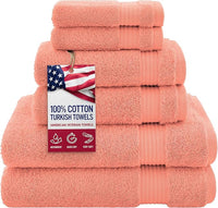 American Veteran Towel, 100% Cotton Turkish 6 Piece Towel Set, Luxury Towels Set of 6 for Bathroom Essentials, 2 Bath Towels 2 Hand Towels 2 Washcloths, Coral