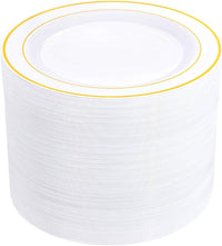 bUCLA 100Pieces Gold Plastic Dinner Plates - 10.25inch White and Gold Plates Disposable for Party - Ideal for Wedding & Daily Use