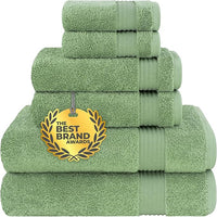 Cotton Paradise 6 Piece Towel Set 100% Cotton Soft Absorbent Turkish Towels for Bathroom 2 Bath Towels 2 Hand Towels 2 Washcloths Sage Green Towel Set