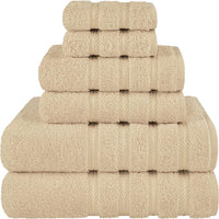 American Soft Linen Luxury 6 Piece Towel Set, 2 Bath Towels 2 Hand Towel 2 Washcloths, 600 GSM 100% Cotton Turkish Towels for Bathroom, Beige Towel Sets