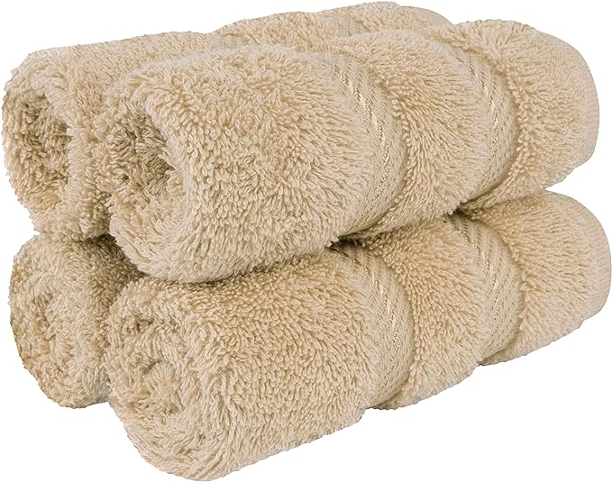 American Soft Linen Luxury Washcloths for Bathroom, 600 GSM 100% Cotton 4 Piece Turkish Wash Cloth Set, 13x13 in Soft Rags for Body and Face, Beige Washcloths