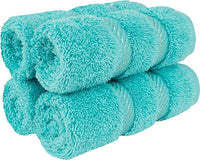 American Soft Linen Luxury Washcloths for Bathroom, 600 GSM 100% Cotton 4 Piece Turkish Wash Cloth Set, 13x13 in Soft Rags for Body and Face, Turquoise Blue Washcloths