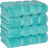 American Soft Linen Luxury Hand Towels for Bathroom, 600 GSM 100% Cotton Turkish 4 Piece Hand Towel Set, 600 GSM Hand Face Towels for Kitchen, Turquoise Blue Hand Towels