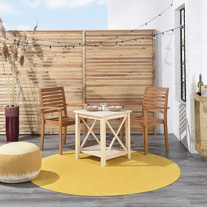 Nourison Essentials Indoor/Outdoor Yellow 6' x Round Area Rug, Easy Cleaning, Non Shedding, Bed Room, Living Room, Dining Room, Backyard, Deck, Patio (6 Round)