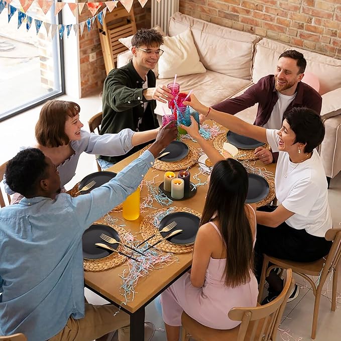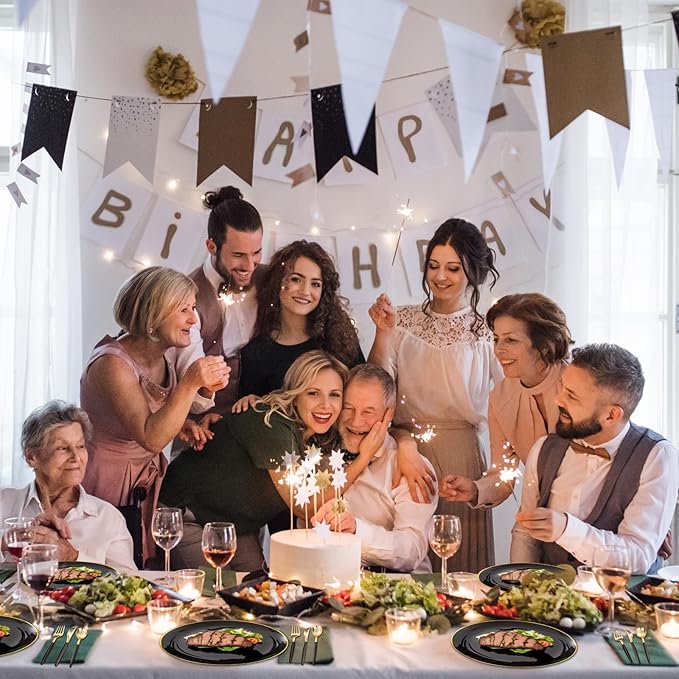 150pcs Black Plastic Plates, Black and Gold Plates,Gold Plastic Silverware,Black and Gold Dinnerware Set,Premiun Taleware,Perfect for Birthday,Party,Wedding,Anniversary