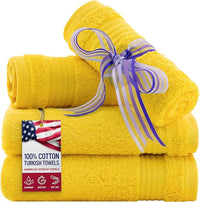 American Veteran Towel, 100% Cotton Turkish Washcloths for Bathroom Essentials 4 Pack, Soft Absorbent Wash Cloths Quick Drying Small Towels Washrags, Yellow