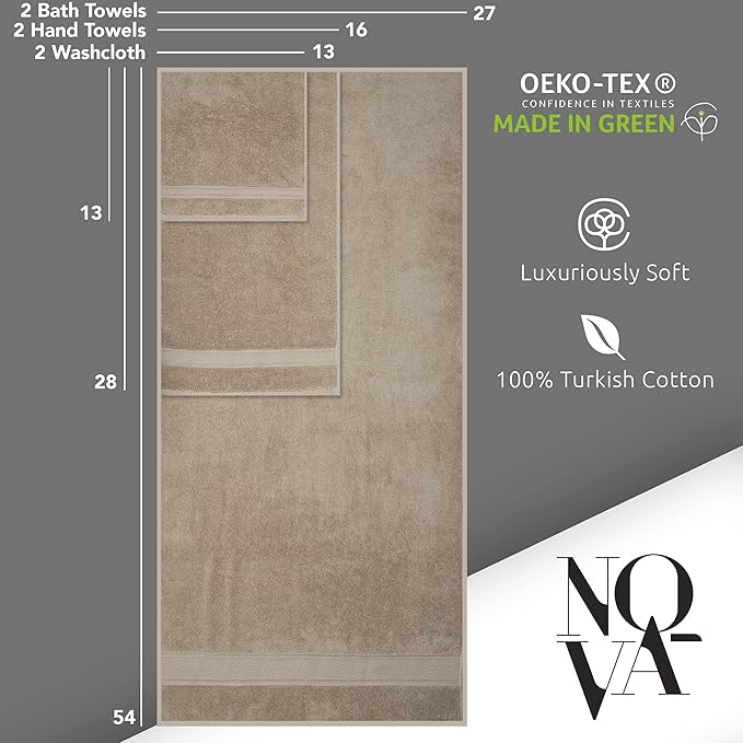 NOVA Luxury Linen - Hotel Quality Turkish Towel Set for Bathroom (6 Pcs Towel Set, Warmsand Beige)