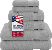 American Veteran Towel, 100% Cotton Turkish 6 Piece Towel Set, Luxury Towels Set of 6 for Bathroom Essentials, 2 Bath Towel 2 Hand Towel 2 Washcloth, Light Grey