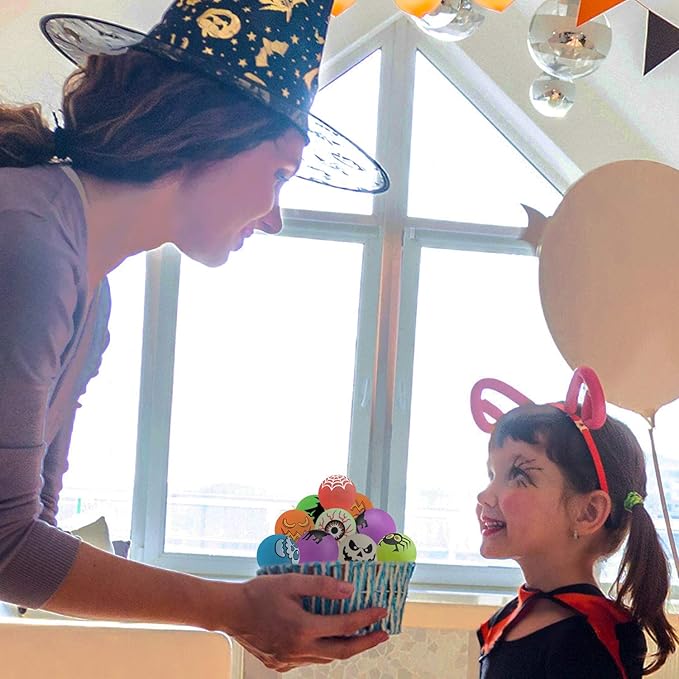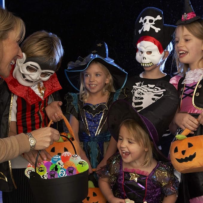 40 Glow in The Dark Bouncing Balls, 8 Halloween Theme Designs, Party Favor Supplies, Trick or Treating Goodie Bag Filler, School Classroom Game Rewards, Miniatures (with Pouch Bag)