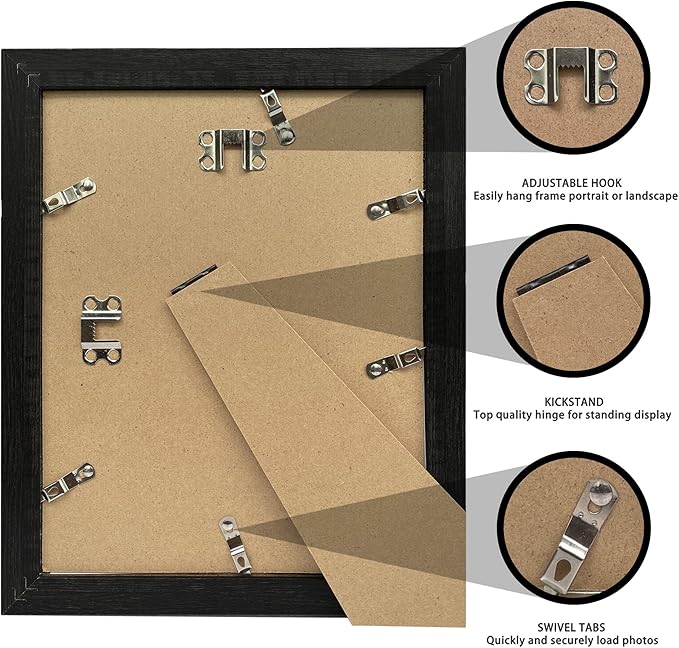8x10 Picture Frame Set of 2, Made of Real Glass and Rustic Black Wooden Frame - Display Picture 5x7 with Mat or 8x10 Without Mat, 8 by 10 Photo for Wall or Tabletop