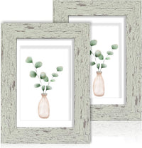 5x7 Picture Frame Set of 2, Made of Real Glass and Sage Green Wooden Frame - Display Pictures 4x6 with Mat or 5x7 Without Mat, 5 by 7 Photo Frame for Wall or Tabletop Display